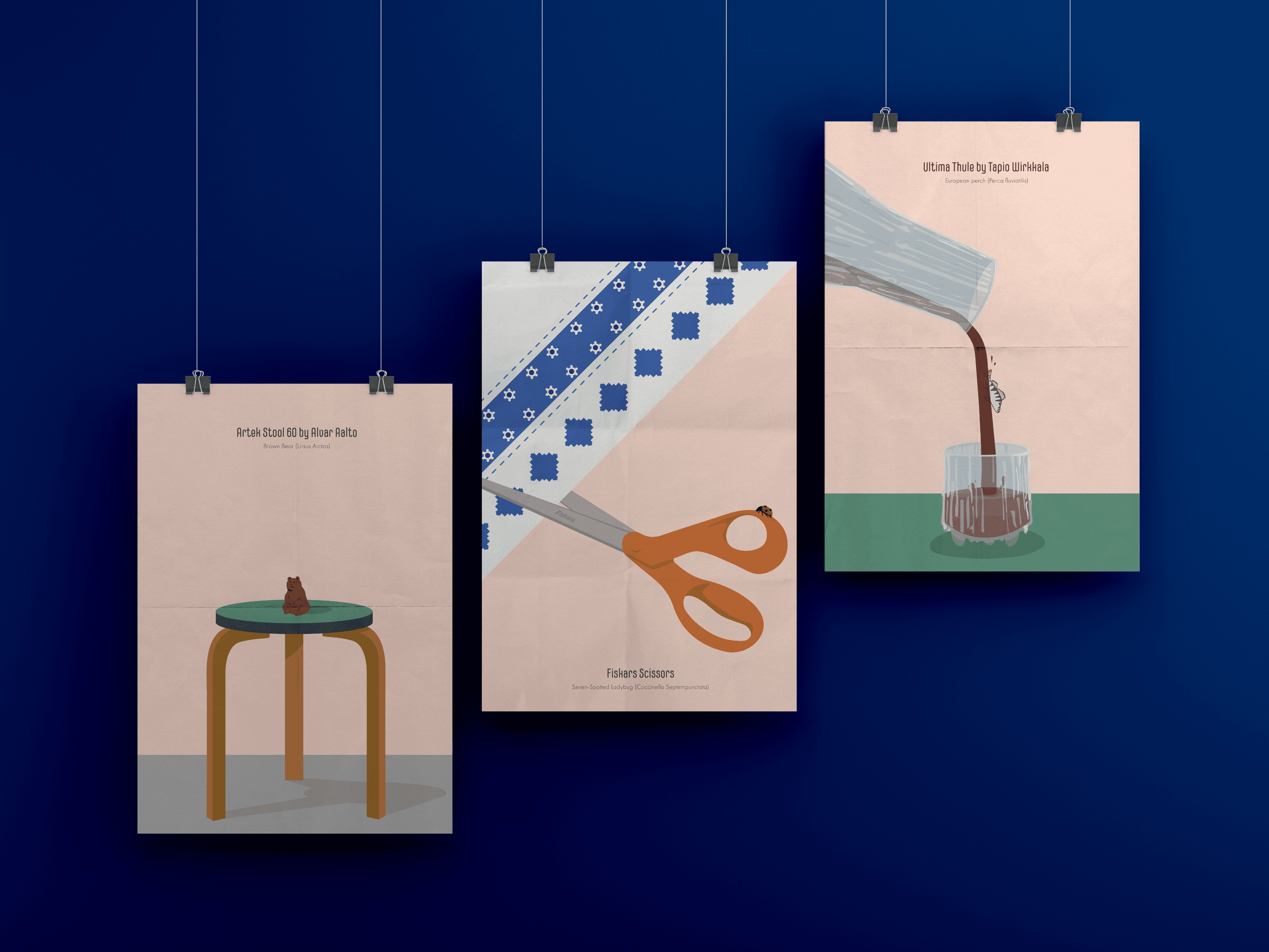 Three illustrated posters that showcases the best of Finnish design. Scandinavian design minimalism meets pastel perfection.