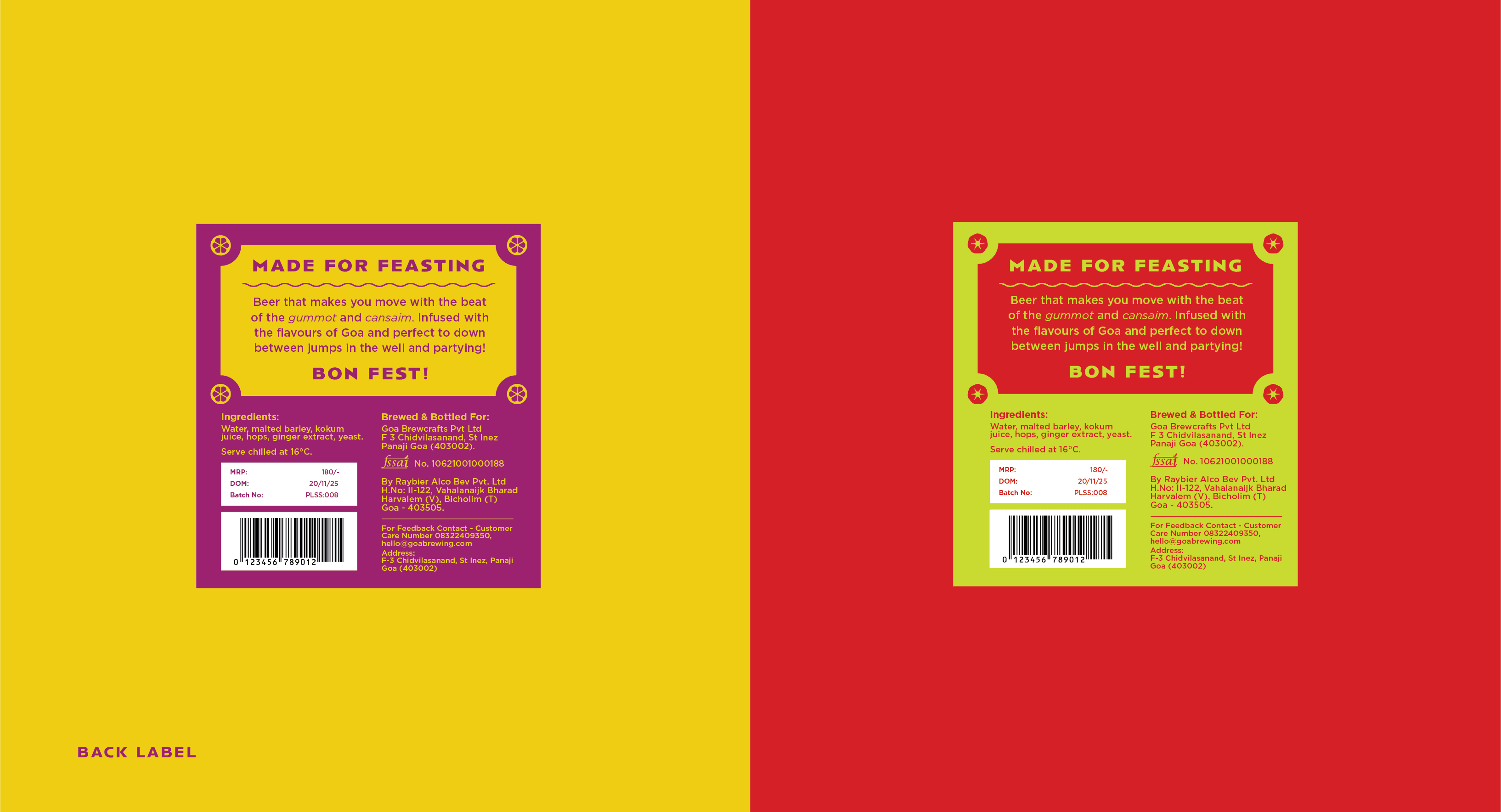 Two non-alcoholic beers born from the Goan soil and made for feasting. The design is simple yet effective and screams fun and festive through its use of bright colours.